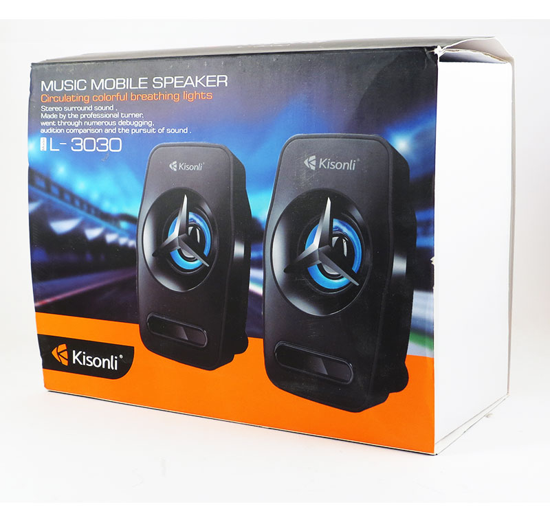 - Loa máy tính 2.0 Kisonli KS-03 - Công Suất Định Mức : 3W x 2 - Kích thước vành loa: 36mm x 2 - Tần số đáp ứng : 80Hz - 20KHz - Tỷ