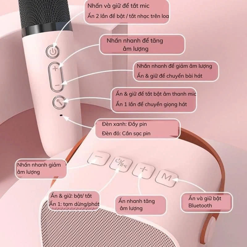 Mua tại TiktokLoa Karaoke Bluetooth Cầm Tay Mini Tặng Kèm 2 MIC - Loa Nghe Nhạc Âm Thanh Cực Lớn Chống Rè :Loa Bluetooth Karaoke Mini kết hợp dùng để nghe nhạc và hát karaoke vô cùng độc đáo với thiết kế nhỏ nhẹ có thể mang đi mọi nơi cho những buổi giã ngoại, cắm trại và tiệc tùng hoặc giao lưu trong nhà. :Loa có thể kết nối bluetooth với Điện thoại, Máy tính bảng, Smartphone, Smart TV, Laptop, Máy tính, Máy chiếu,... Bạn có thể dùng 1 mic hoặc 2 mic không dây đi kèm để thỏa sức hát karaoke không giới hạn. ĐẶC ĐIỂM SẢN PHẨM