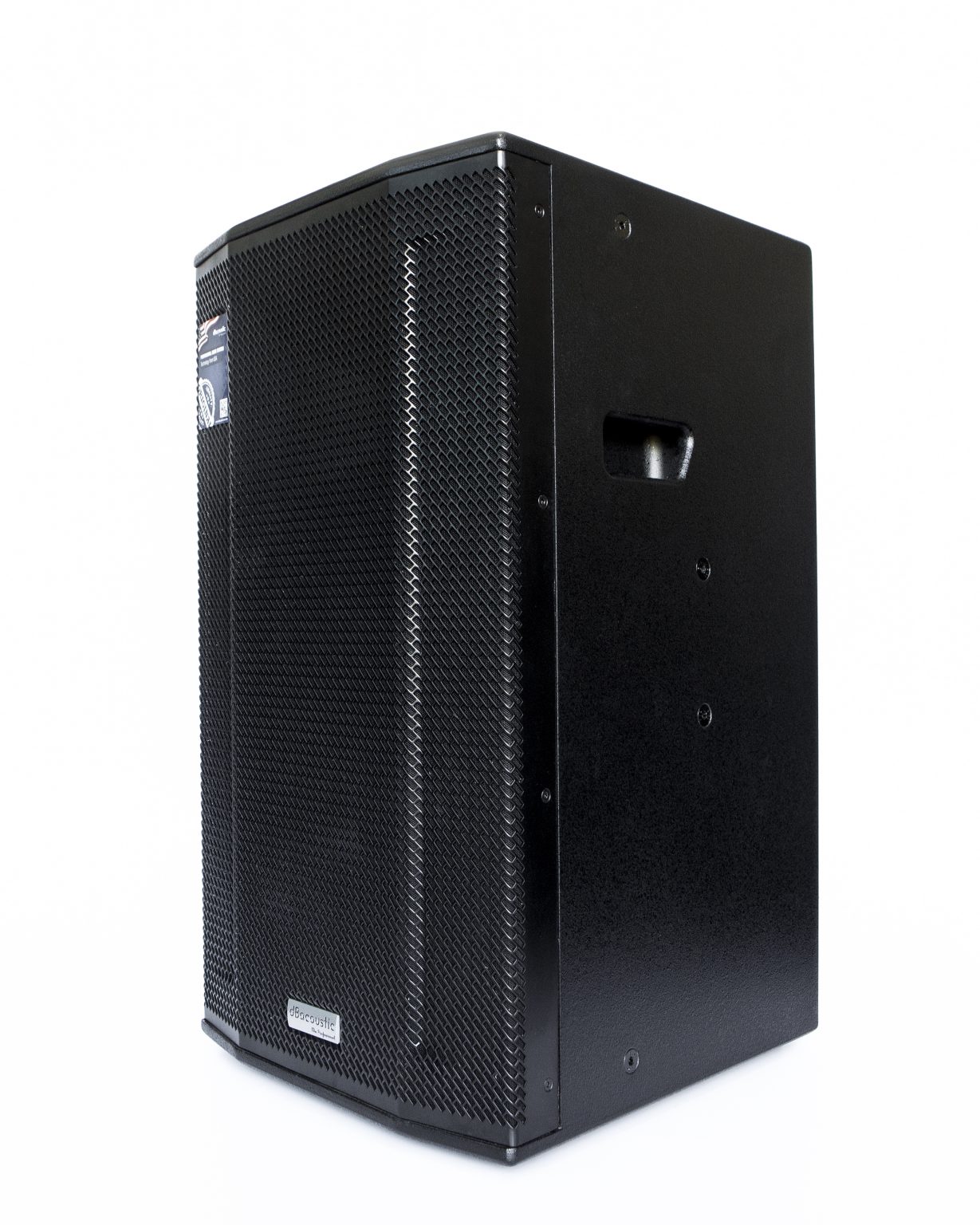 Mặt trước được bảo vệ bởi lớp Ê căng thép 16 gauge được sơn phủ tĩnh điện chống gỉ, chống lại các tác động cơ học. Logo dBacoustic có thiết kế vô cùng nổi bật mang đến sự sang trọng. Phía sau loa là các đầu kết nối Neutrik Speakon, cổng kết nối này cho tín hiệu tốt và độ bền cao.