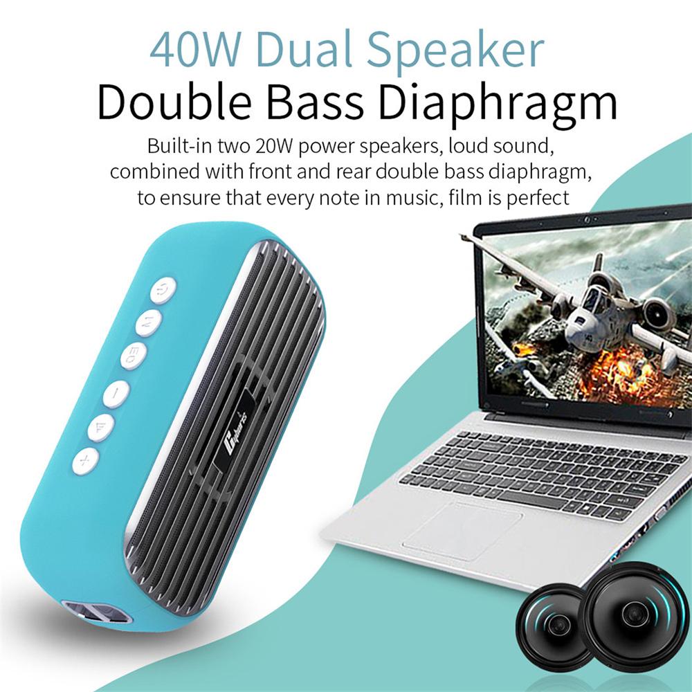 Features: Wireless portable BT speaker: Enjoy a High Definition stereo sound with a impressive volume whether you're lounging around the house,or partying, walking out, camping, hiking, biking. IPX7 Professional Waterproof: Military-grade three defense, use 20W20