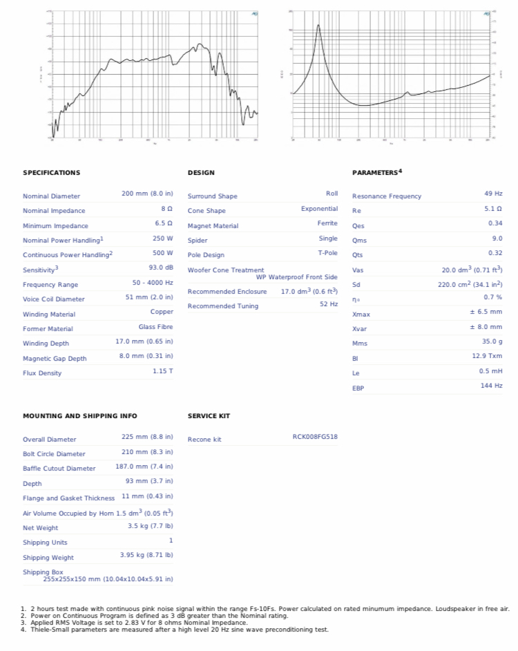 THÔNG SỐ KỸ THUẬT LOA BASS RỜI B&C SPEAKERS 8FG51