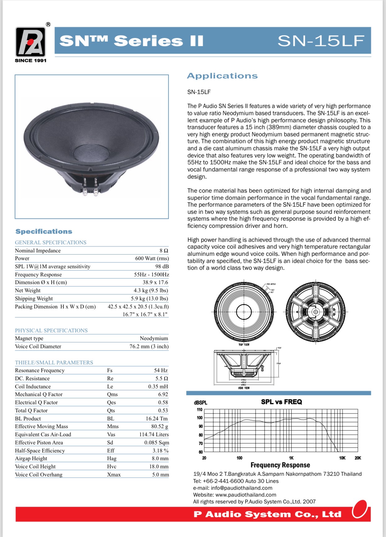 Khi cần một chiếc loa hiệu suất cao, linh hoạt và giá cả tốt, SNII-15LF là lựa chọn lý tưởng cho loa bass trong thiết kế âm thanh hai chiều đẳng cấp thế giới.