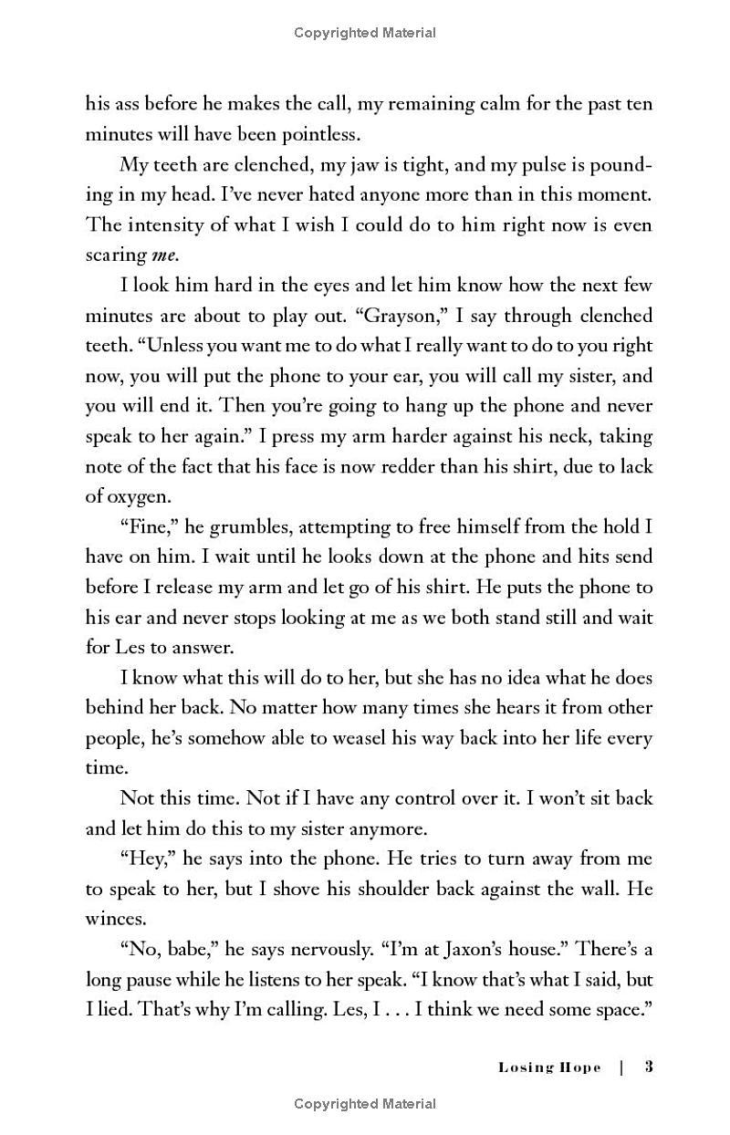 In Hopeless, Sky left no secret unearthed, no feeling unshared and no memory forgotten, but Holder's past remains a mystery. He is haunted by the little girl he let walk away from him and he has spent his entire life searching for her. He had hoped that he would finally gain closure and be able to rid himself of his guilt the moment they were reconnected. But he could not have anticipated that the exact opposite would occur and even more guilt and regret would be thrust upon him. Sometimes in life, if we wish to move forward we must first dig deep into our past and make amends with it. In Losing Hope, readers will learn what was going on inside Holder's head during all those moments that left him feeling hopeless and see whether he can perhaps gain the peace he desperately needs--.