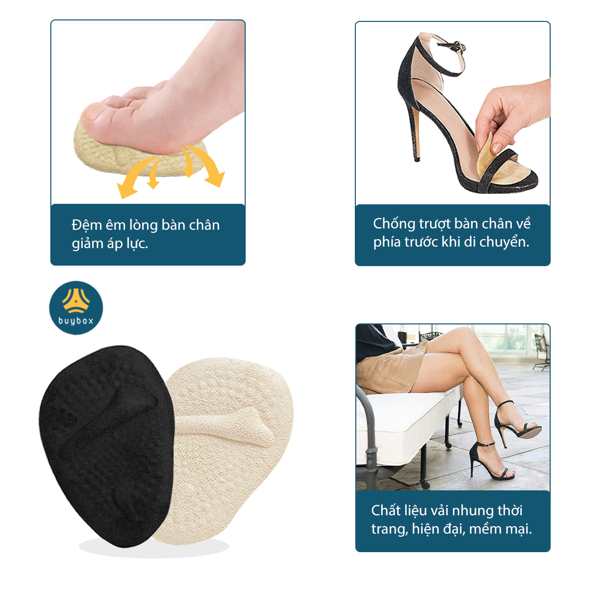 #shorts Lót giày cao gót, giày lười, sandal chống trượt, giúp êm nửa bàn chân - Buybox - BBPK226