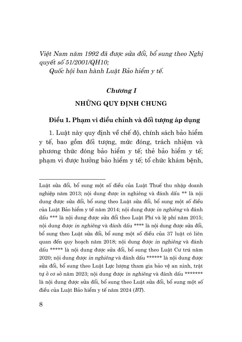 ĐIỀU 1 LUẬT BẢO HIỂM Y TẾ NĂM 2008 (SỬA ĐỔI BỔ SUNG NĂM 2013, 2014, 2015, 2018, 2020, 2023)