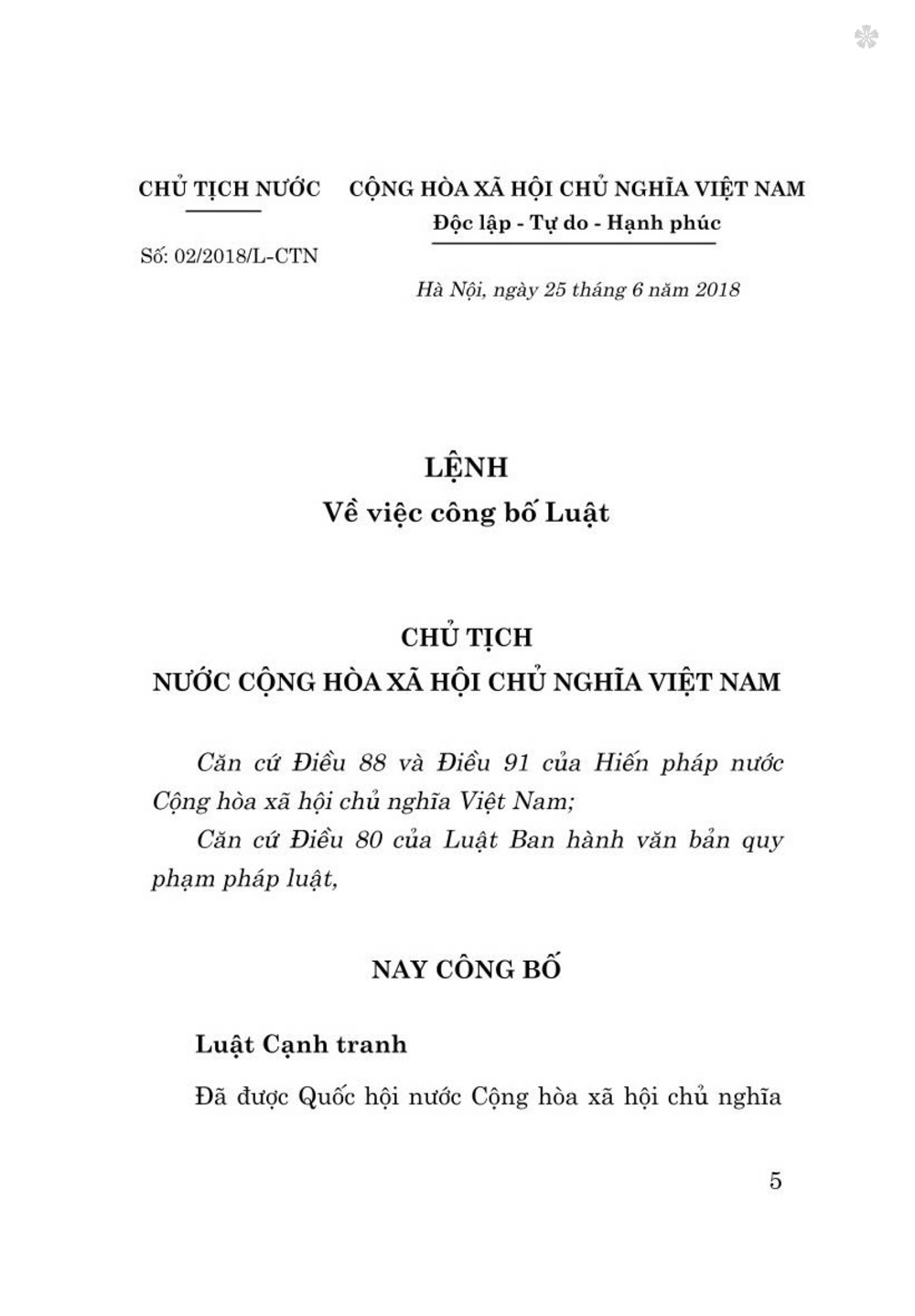 Mua tại TiktokLuật Cạnh Tranh (Hiện Hành) Luật cạnh tranh đã được Quốc hội nước Cộng hòa xã hội chủ nghĩa Việt Nam khóa XIV, kỳ họp thứ 5 thông qua ngày 12 tháng 6 năm 2018 và có hiệu lực thi hành từ ngày 01 tháng 7 năm 2019.