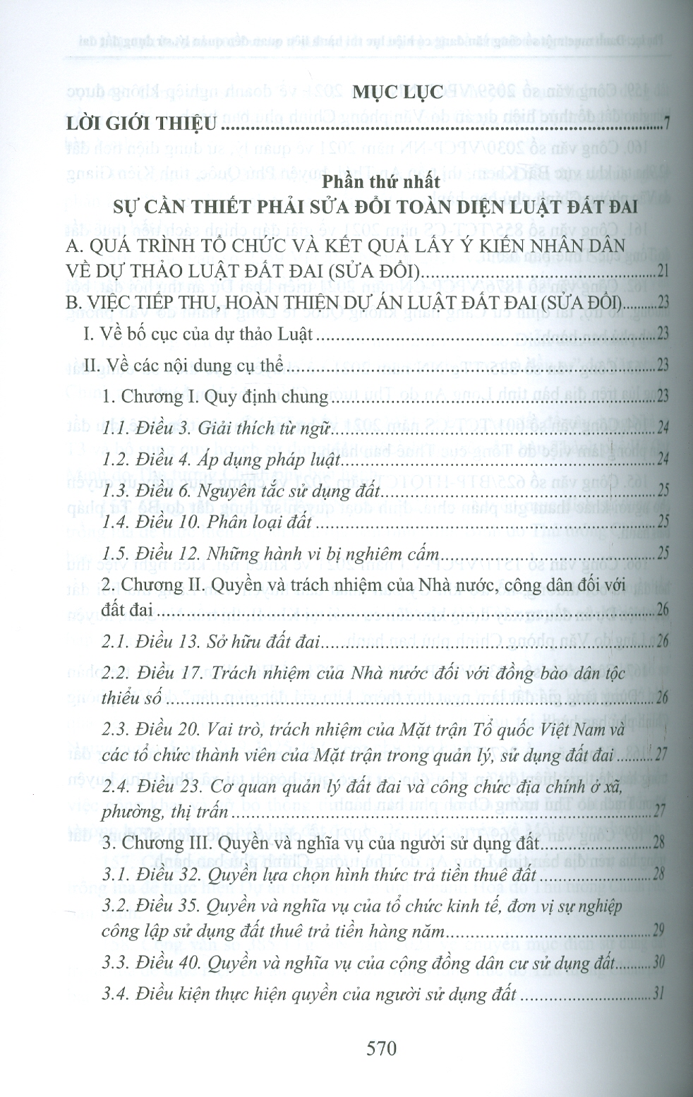 Ngày 18/01/2024, Quốc hội nước Cộng hòa xã hội chủ nghĩa Việt Nam thông qua Luật Đất đai số 31/2024/QH15, đã thể chế hóa đầy đủ, kịp thời các quan điểm, chủ trương của Đảng