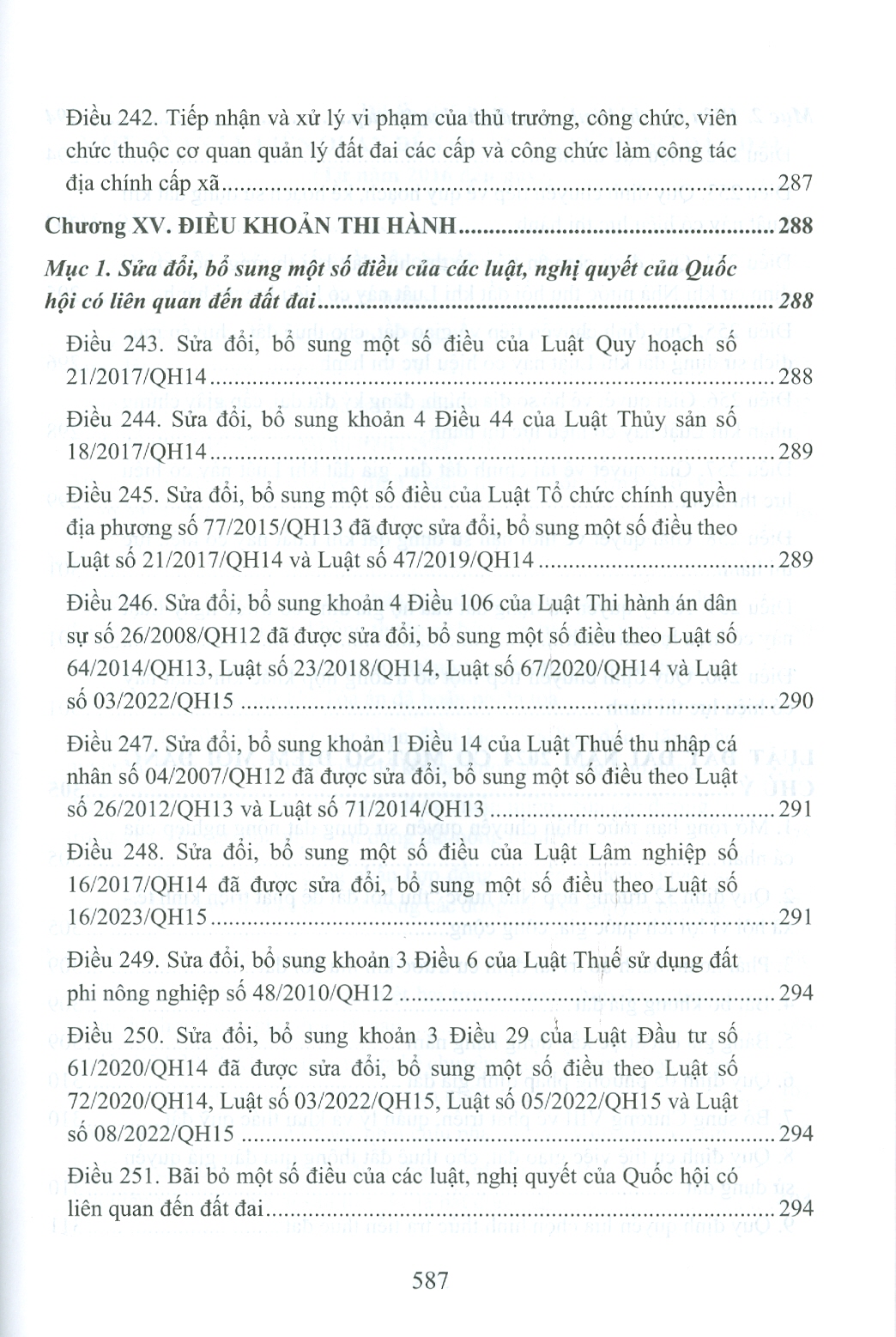 Luật Đất đai số 31/2024/QH15 được Quốc hội nước Cộng hòa xã hội chủ nghĩa Việt Nam khóa XV, kỳ họp bất thường lần thứ năm thông qua ngày 18 tháng 01 năm 2024,
