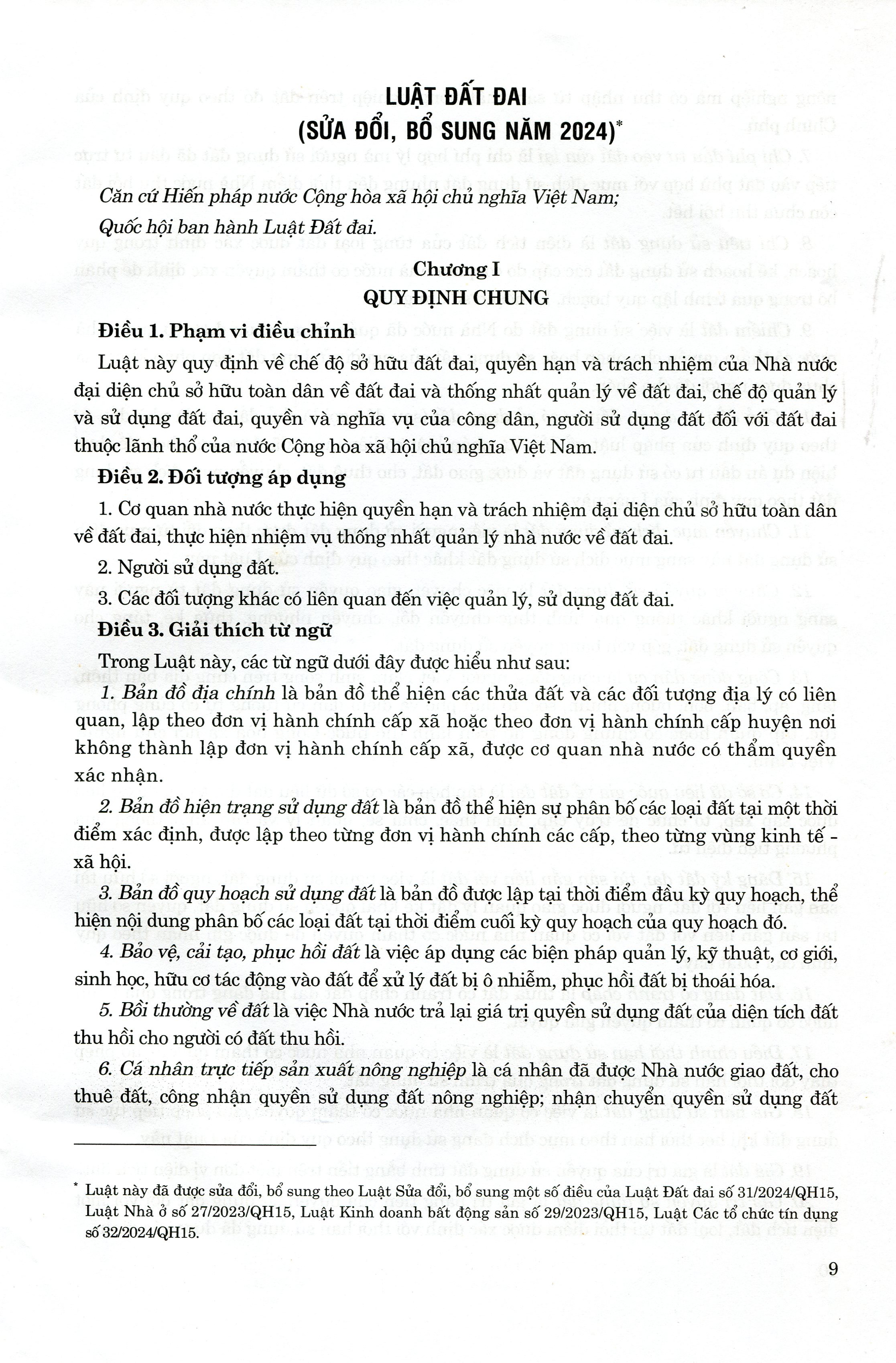 Luật Đất đai số 31/2024/QH15 được Quốc hội nước Cộng hòa xã hội chủ nghĩa Việt Nam khóa XV, kỳ họp bất thường lần thứ năm thông qua ngày 18 tháng 01 năm 2024,