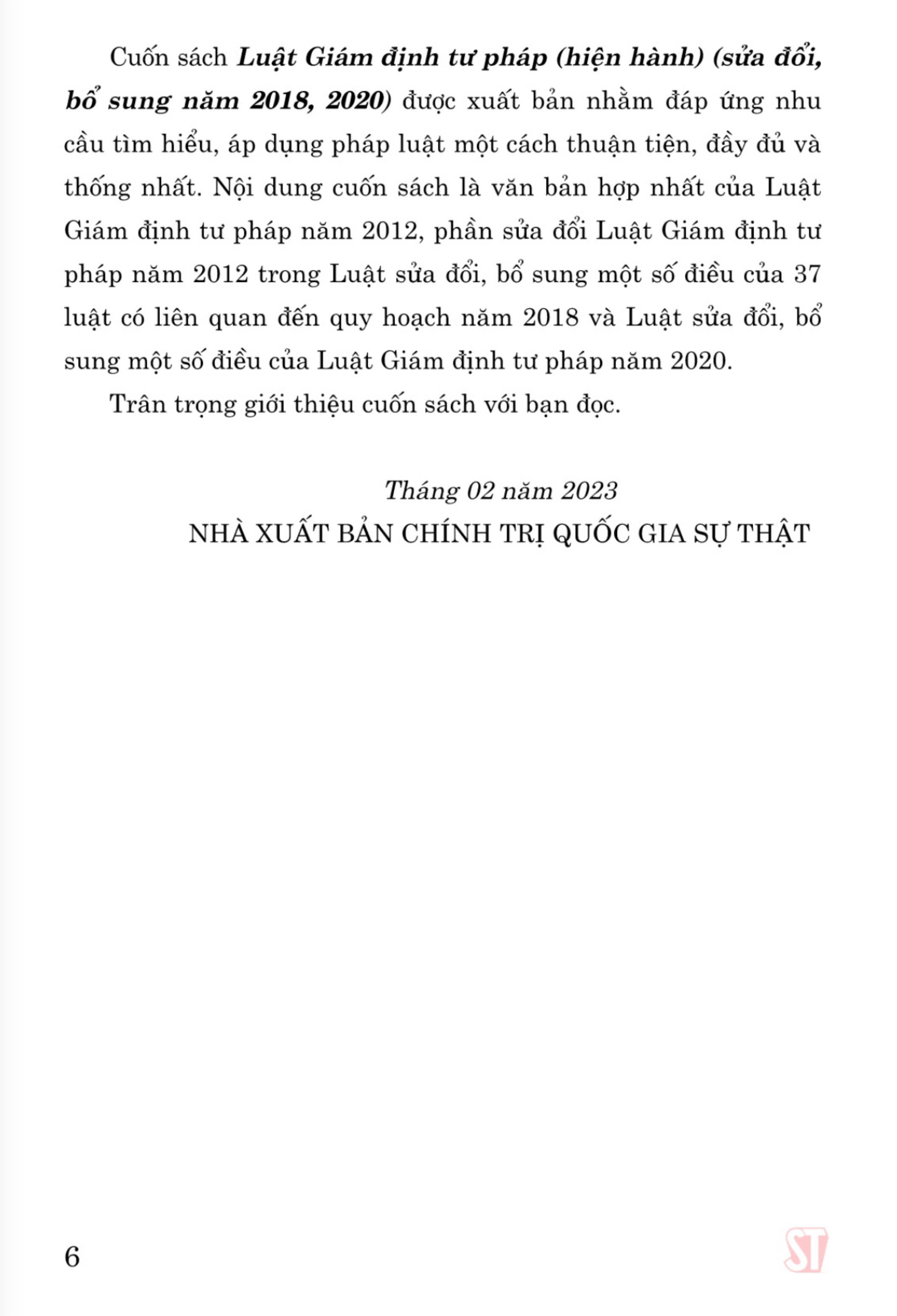 Nhằm đáp ứng nhu cầu của bạn đọc trong việc nghiên cứu, tìm hiểu, áp dụng pháp luật một cách thuận tiện, đầy đủ và thống nhất, Nhà xuất bản Chính trị quốc gia Sự