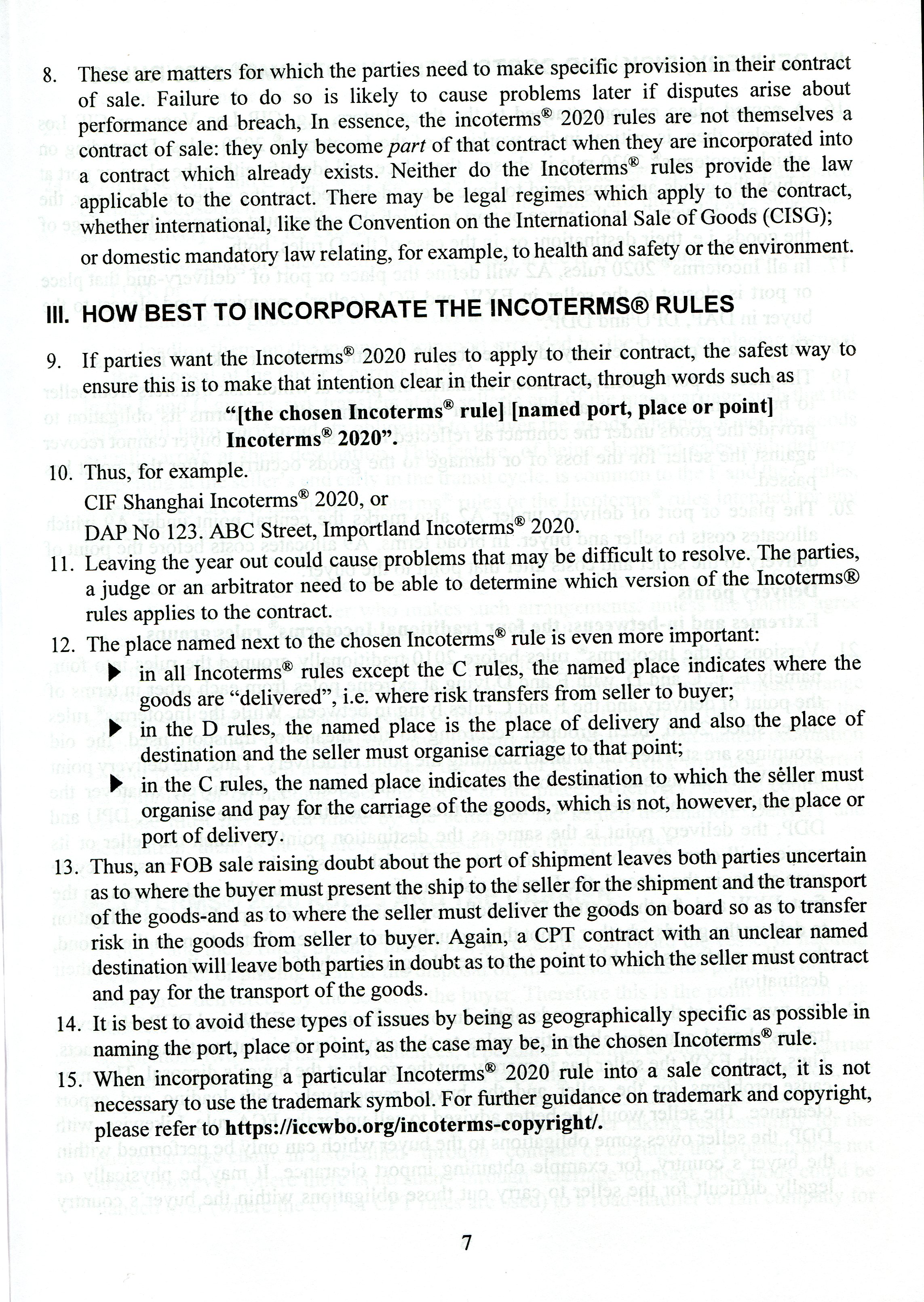 Phần thứ năm: Hướng dẫn sử dụng Incoterm® 2010.