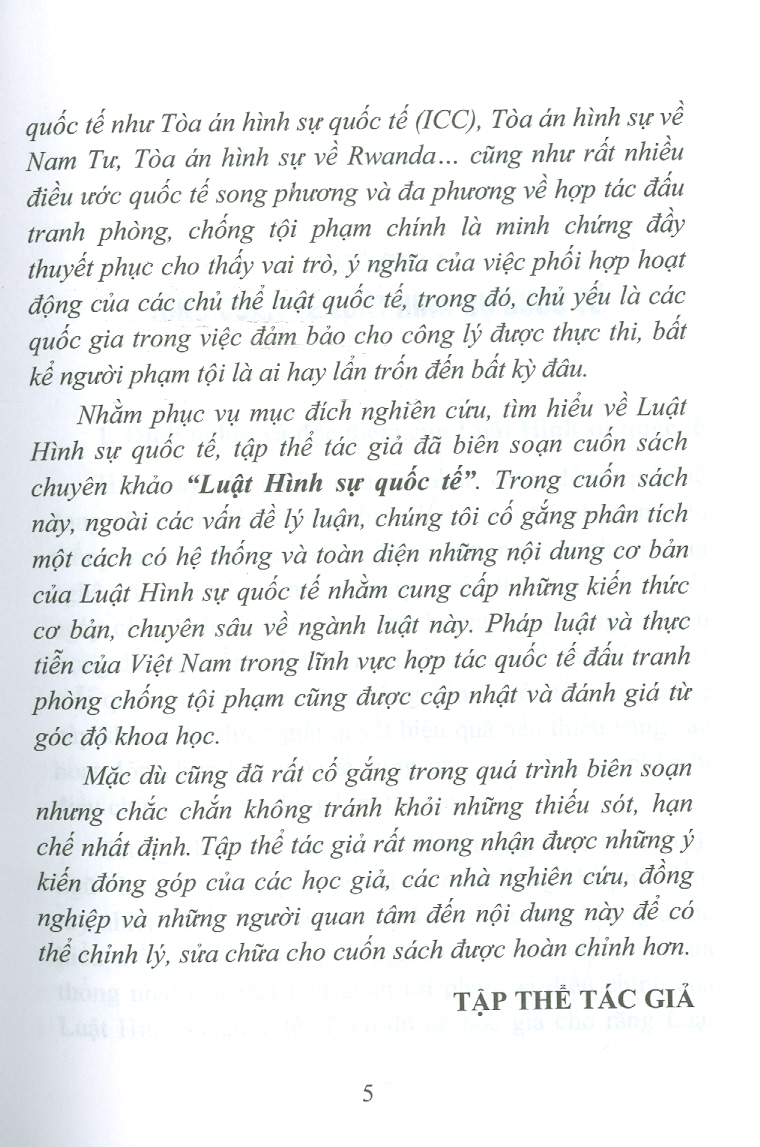 Luật Hình Sự Quốc Tế (DH) Trong cuốn sách này, ngoài các vấn đề lý luận, chúng tôi cố gắng phân tích một cách có hệ thống và toàn diện những nội dung cơ