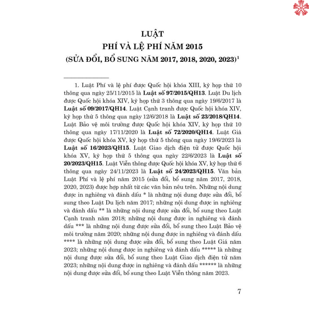 ✨Luật phí và lệ phí năm 2015 (sửa đổi, bổ sung năm 2017, 2018, 2020, 2023) bản in 2024
