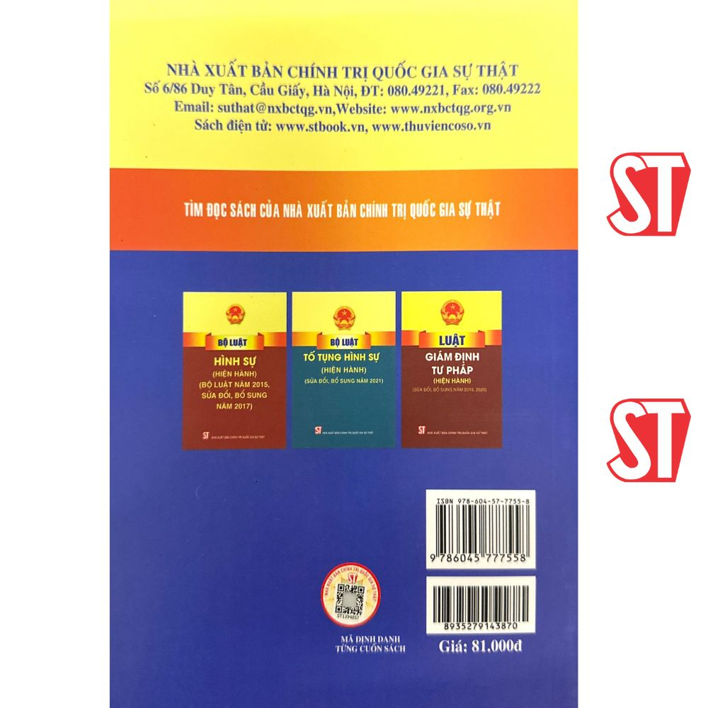 Sách - Bộ luật Hình sự, Bộ luật Tố tụng Hình sự (sửa đổi, bổ sung năm 2025) Tác giả: Quốc Hội Nhà xuất bản: Lao Động Ngày xuất bản: 9.2025 Đơn vị phát hành: