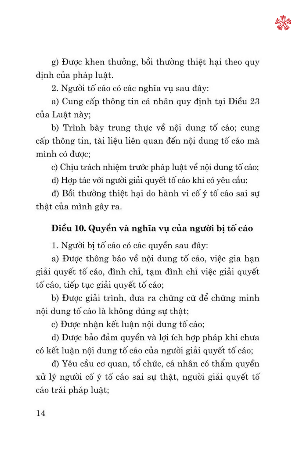 Chương 2: Quyền và nghĩa vụ của người tố cáo, người bị tố cáo, người giải quyết tố cáo.