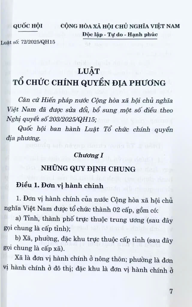 Toàn văn: LUẬT TỔ CHỨC CHÍNH QUYỀN ĐỊA PHƯƠNG | LUẬT SỐ 72/2025/QH15 | NGƯỜI DÂN CẢ NƯỚC CẦN BIẾT