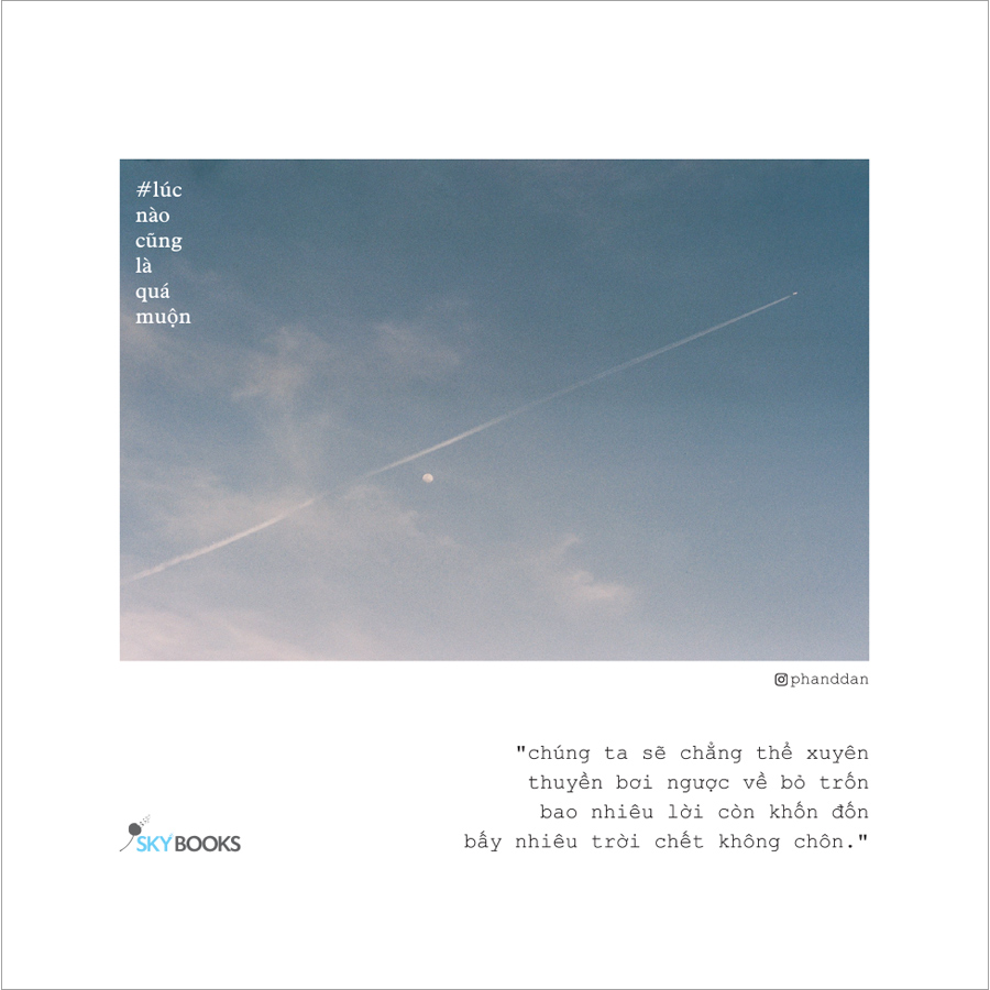 Và hơn thế, người đọc còn dễ dàng bắt gặp thế giới nội tâm của chính mình trong từng câu chữ, khi đó "Lúc nào cũng là quá muộn”, giống như lời hỏi thăm, tâm sự với những ai đang loay hoay, chơi vơi giữa cuộc đời. Mong rằng bạn có thể đọc từng trang sách và cảm thấy được an ủi, xoa dịu đi một phần nào đó nỗi buồn, cũng có thêm phần nào đó dũng khí để bước qua những câu chuyện đã cũ và thấy lòng mình yên ả, nhẹ bẫng hơn.