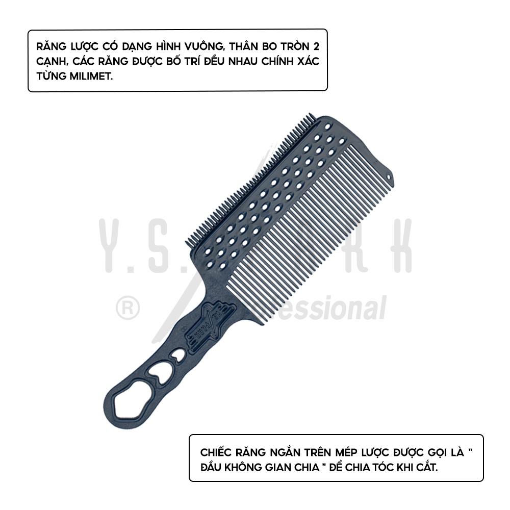 - Lược YS - S282LT với chiều dài 24cm và độ mỏng thân lược 3mm sẽ là mẫu lược phù hợp với mọi tay thợ. Đặc biệt những chiếc răng nhỏ sẽ chải hết phần tóc thừa trên da đầu sau khi cắt