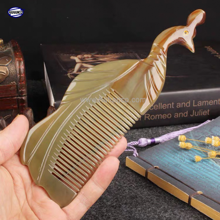 Mua tại TiktokLược sừng xuất khẩu sang thị trường Nhật Bản, EU, US. Lược sừng hình Công trong bộ sưu tập các con vật, con giáp. COH114 được các nghệ nhân làm thủ công tạo hình con Công và tỉa tách những chi tiết nhỏ rất đẹp, chiếc lược dày dặn và làm bóng bảy rất kỹ. Được tỉa hình hai mặt giống nhau. Mẫu lược này được sản xuất nhiều công đoạn phức tạp, các đường nét khía sâu vào thân lược rất tỉ mỉ và chi tiết, uốn lượn tinh xảo. Những chiếc răng lược được các bàn tay khéo léo mài dũa từng chiếc một cẩn thận để đạt được độ nhẵn bóng, khi chải tóc sẽ không làm gãy và rụng tóc. Mô tả sản phẩm: