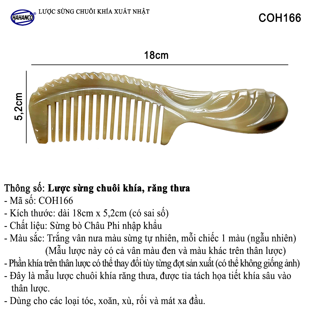 Lược sừng xuất Nhật - COH166 Răng thưa cho tất cả các loại tóc - HAHANCO - LH: 0966218866