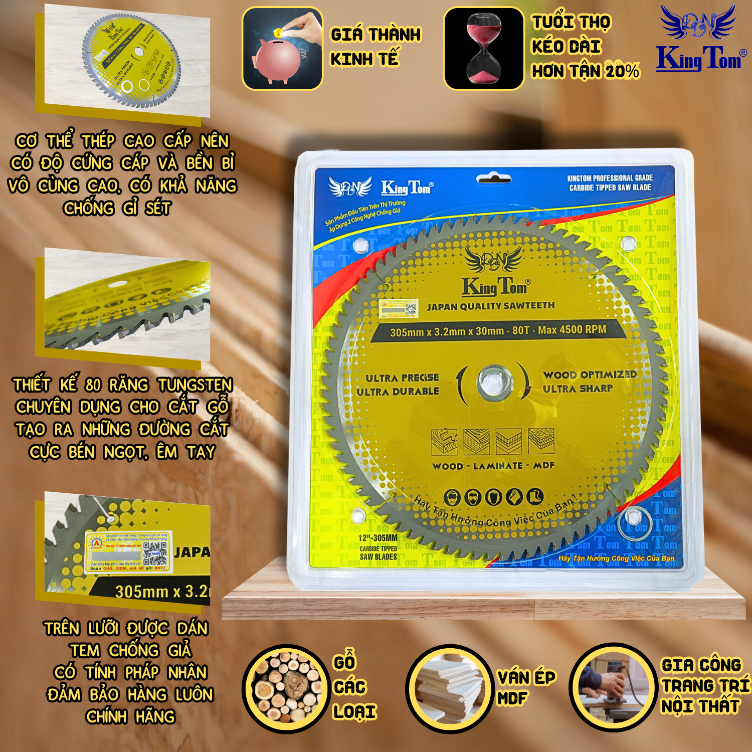 LƯỠI CƯA - LƯỠI CẮT GỖ 305-80 RĂNG KINGTOM VÀNG – CHẤT LƯỢNG VÔ ĐỊCH PHÂN KHÚC GIÁ RẺ!