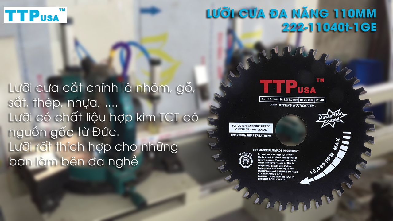 Mua tại TiktokLƯỠI CƯA ĐA NĂNG TTPusa THÔNG SỐ KỸ THUẬT: 1. Lưỡi cưa tròn đa năng 110mm TTPusa 222-11040T-1GE