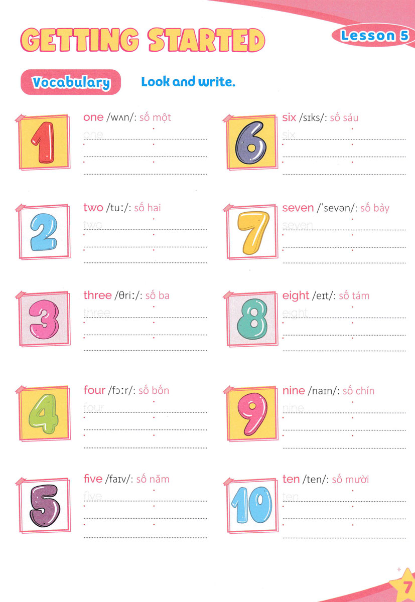 Từ đó, các em có thể sử dụng từ để xây dựng câu trong hoạt động giao tiếp, cũng như giải quyết các bài tập về từ vựng, ngữ pháp… Các em sẽ luyện viết và học từ tiếng Anh bằng các hình ảnh minh họa sinh động. Sau phần luyện từ vựng là các hoạt động chọn từ đúng, điền từ, ghép từ với hình thích hợp, sắp xếp từ, Sau mỗi đơn vị bài học có phần ôn tập (Review) với các hoạt động lý thú giúp các em củng cố kiến thức. Thông qua các hoạt động này các em sẽ cảm thấy hứng thú và tích cực hơn trong quá trình học tập môn Tiếng Anh.