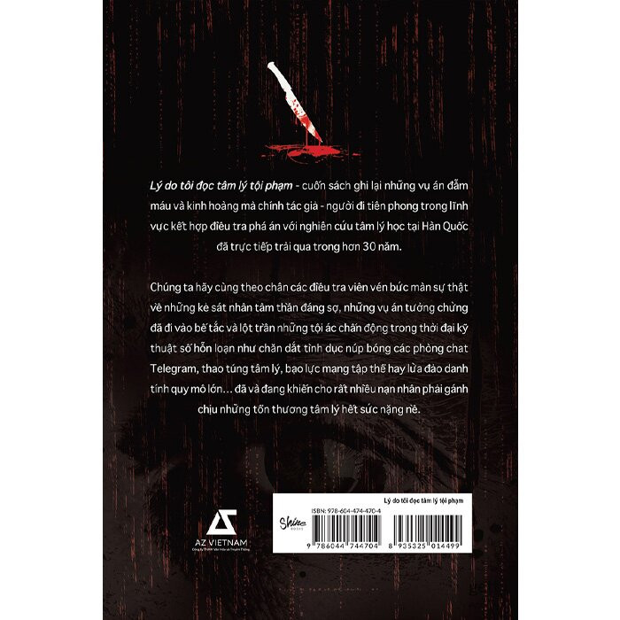 Lý do tôi đọc tâm lý tội phạm - cuốn sách ghi lại những vụ án đẫm máu và kinh hoàng mà chính tác giả - người đi tiên phong trong lĩnh vực kết hợp điều tra phá án với nghiên cứu tâm lý học tại Hàn Quốc đã trực tiếp trải qua trong hơn 30 năm.