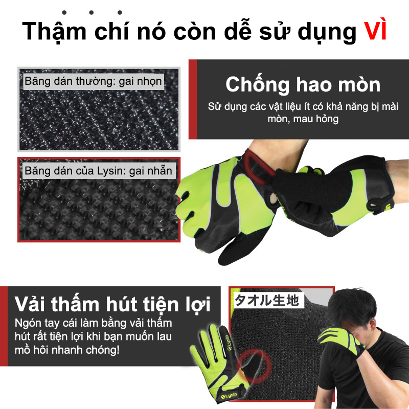 ✨Lysin - găng tay bọc nửa ngón tập gym, thể dục, xe đạp, tạ lure, câu cá, xe máy chống trượt bảo vệ tay thương hiệu Nhật bản