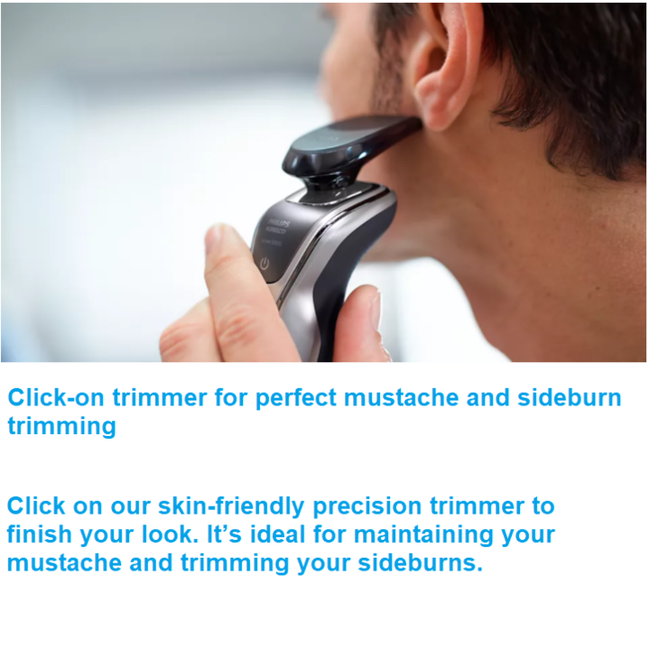 - Đầu tỉa dễ lắp ráp giúp tỉa ria mép và tóc mai hoàn hảo. Dùng đầu tỉa chính xác thân thiện với làn da để hoàn tất diện mạo của bạn. Đây là phụ kiện lý tưởng để bảo vệ bộ ria mép và cạo tóc mai đẹp. Thời gian sử dụng không dây 60 phút