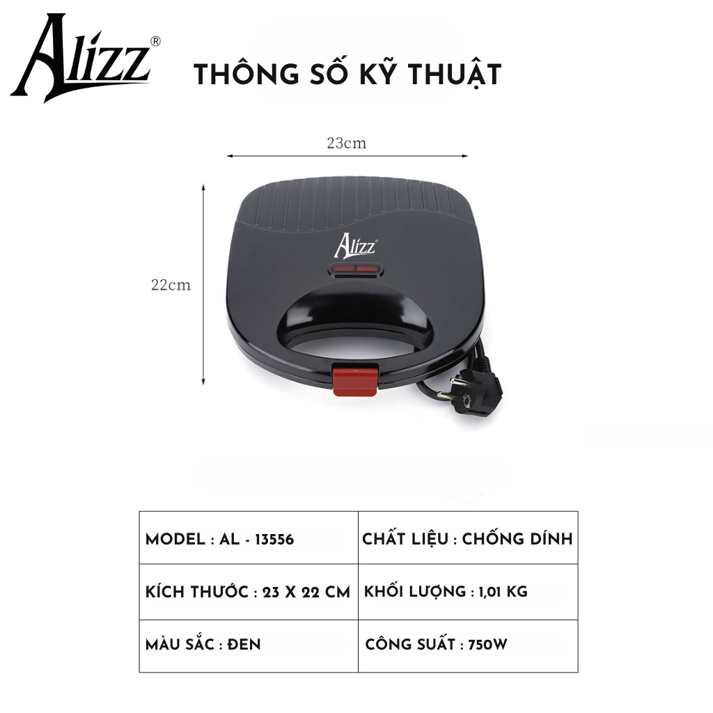 Máy Nướng Bánh Hotdog ALIZZ AL-13556 Kẹp Nướng Bánh Mì Sandwich Công Suất 750W #giadungminhduy