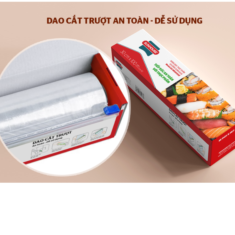 Màng bọc thực phẩm là sản phẩm hỗ trợ bảo quản thực phẩm không thể thiếu trong gian bếp hiện đại ngày nay. Chính vì lý do đó, Màng bọc thực phẩm gia đình SUNHOUSE được sản xuất và đưa ra thị trường với chất lượng tuyệt đối và an toàn với người tiêu dùng
