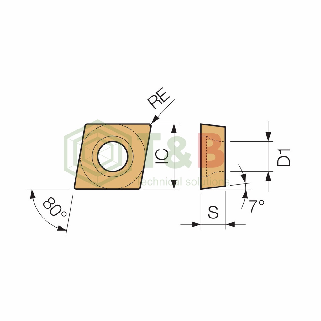 THÔNG SỐ shape C (80 ° rhombus) Use (breaker) Finishing to medium cutting Grade (base material) Carbide selfish none Work material condition Light intermittent thickness 02 (2.38) accuracy M Number of available corners 2 Breaker symbol GK Work material M (stainless steel) [○] / S (heat resistant alloy / titanium alloy) [○] Corner R (nose R) (mm) 0.4 0.4 Escape angle Positive 7 ° (C) coating PVD coating Cutting edge length 06 06 Groove / hole T (with holes) Wiper blade none Grade symbol PR1535 Scoop angle (°) 17 17