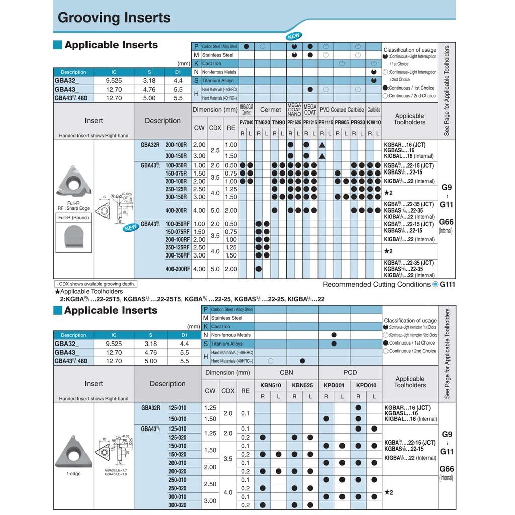 Mảnh dao tiện rãnh phủ PVD Kyocera Model GBA43L250-125R PR1215 Hàng Chính Hãng Chất Lượng Uy Tín