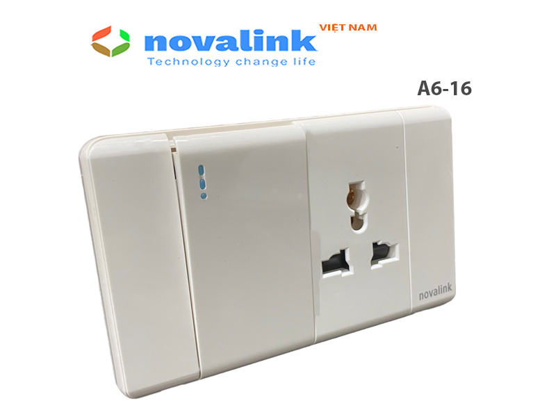 Mặt công tắc đèn 1 chiều kèm ổ điện 3 chấu cắm đa năng âm tường A6-16 Novalink chính hãngMặt công tắc đèn 1 chiều kèm ổ điện 3 chấu cắm đa năng âm tường A6-16 Novalink chính hãng
