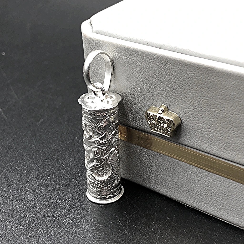 Mặt Dây Chuyền Nam Nữ Bạc Ta Đựng Bùa Hình Trụ Khắc Họa Tiết Rồng Bạc Hiểu Minh MDN023T