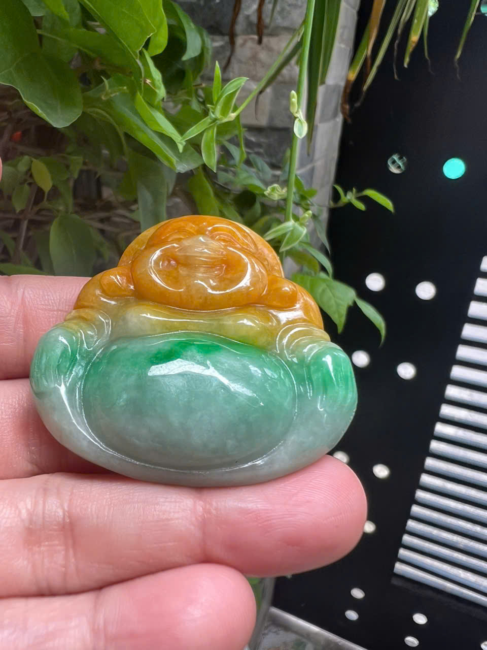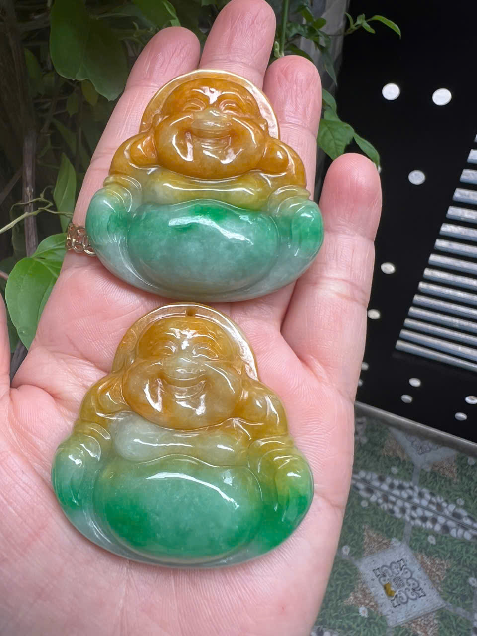 Mặt dây chuyền Phật Di Lặc Đá Cẩm Thạch Vàng Xanh tự nhiên mới đẹp Kt C49mm N49mm D12mm #dilac