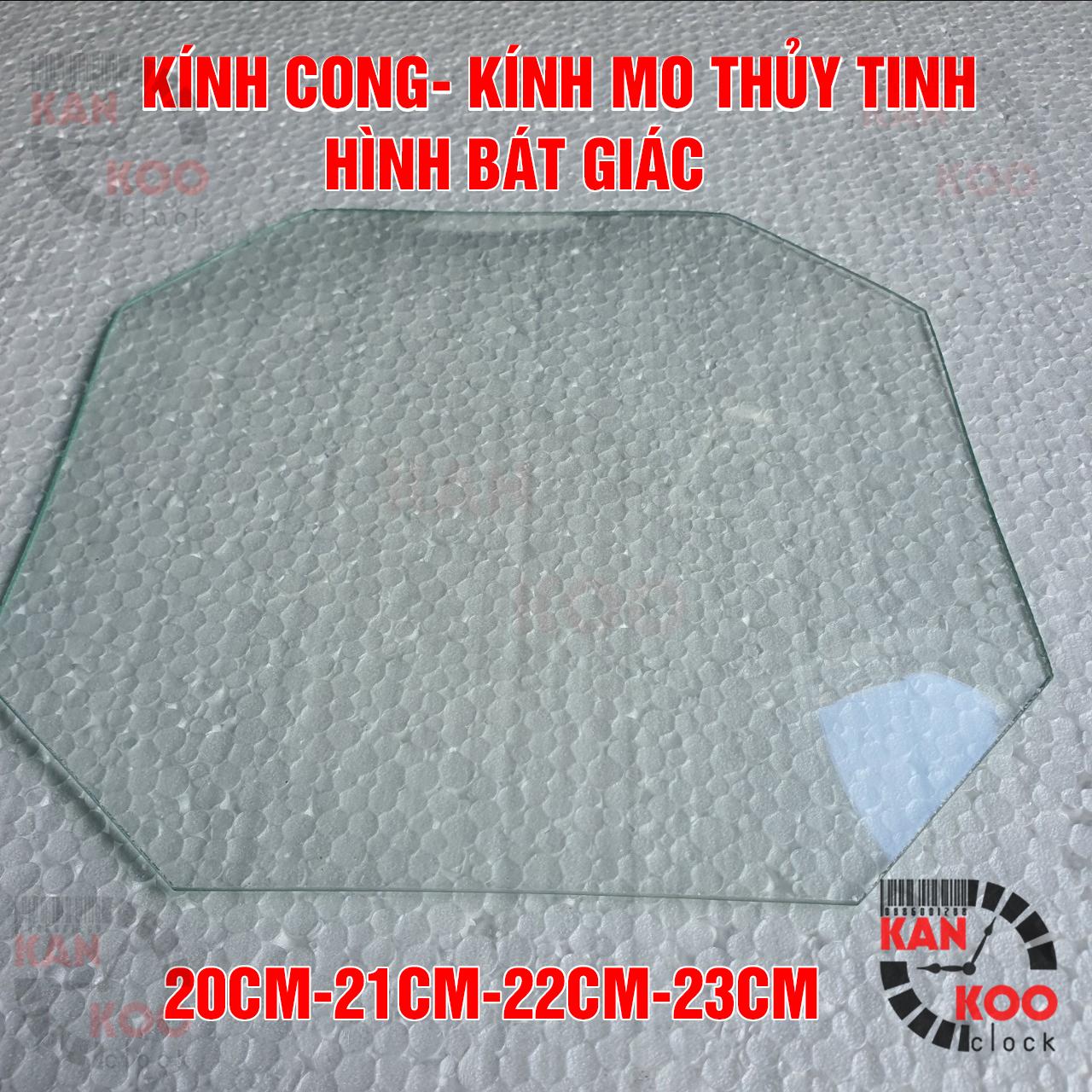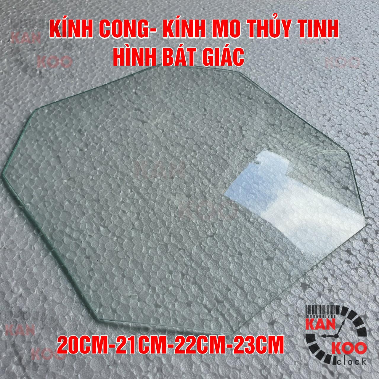 Mặt kính cong- kính thủy tinh mo HÌNH BÁT GIÁC nhiều cỡ từ 21cm đến 23cm dùng cho đồng hồ treo tường, đồng hồ cổ, đồng hồ cơ các loại:
