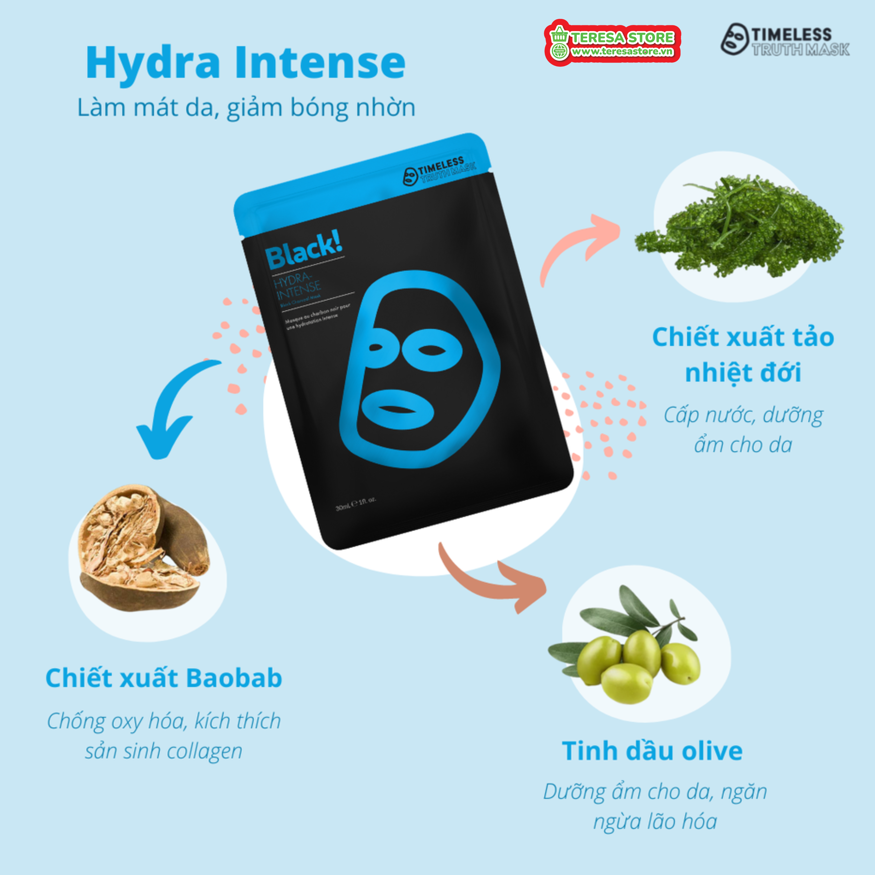 Mua tại TiktokHydra Intense Timeless Truth Mask Mặt nạ than hoạt tính cấp nước, dưỡng ẩm sâu Thành phần - Công dụng: