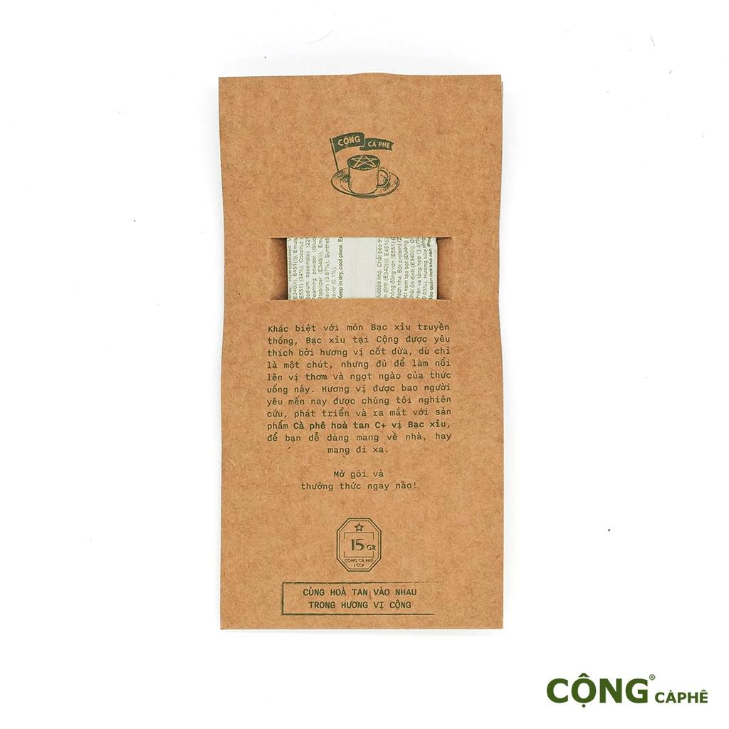 - Lấy cảm hứng từ một trong những đồ uống được yêu thích nhất tại Cộng, Cà phê hoà tan C+ vị Bạc xỉu mang hương vị ngọt ngào khó quên của cà phê sữa, hoà cùng hương thơm nhẹ từ cốt dừa.