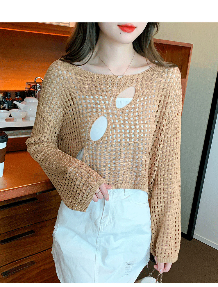 [MẪU MỚI] Áo len dệt thưa tay dài cut out mặc ngoài C169 SẢN PHẨM KHÔNG KÈM ÁO MẶC BÊN TRONG ​​​​​​​Kích thước: Freesize dáng oversize (phù hợp nữ cao 1.5m->dưới 1.7m, nặng dưới 65kg
