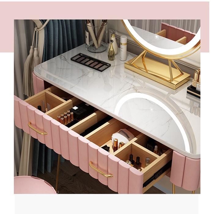 Bàn trang điểm kèm gương đèn led thiết kế phong cách Bắc Âu sang trọng