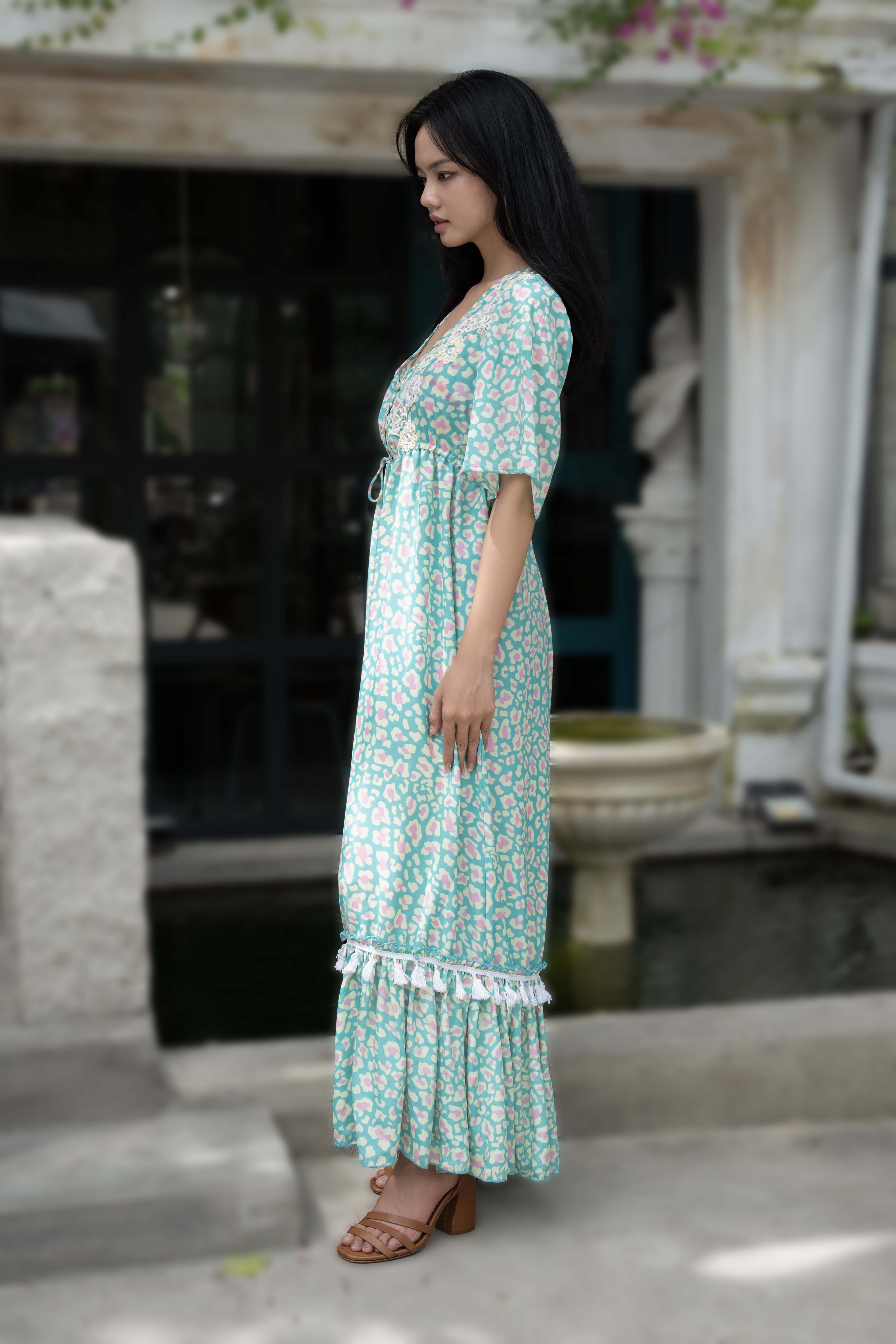 Maxi Cotton Cao Cấp Luna Llena, Chất cotton mềm mại, dày dặn, họa tiết trang nhã. Cut out phần lưng sau. Dài 130 (40x130) Phù hợp: Dự tiệc, dạo phố, đi biển hoặc công sở.