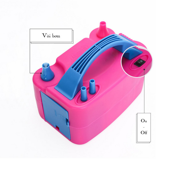 - Máy bơm bong bóng điện chạy bằng điện, rất dễ sử dụng. Dùng để bơm bong bóng trong các dịp như: sinh nhật, thôi nôi, đám cưới, cắm trại ngoài trời,