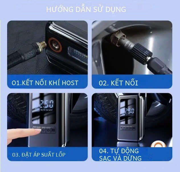 Hướng dẫn bơm lốp ô tô xe máy mini cầm tay không dây