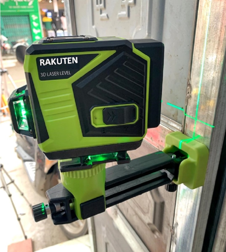 - Máy cân bằng laser 12 tia xanh 3D RAKUTEN là loại máy phát ra các chùm sáng laser quét ngang, quét dọc, được dùng để xác định các điểm cân bằng hay các đường thẳng, đường ngang vuông góc một cách chính xác. Máy được sử dụng trong nhiều ứng dụng khác nhau như: