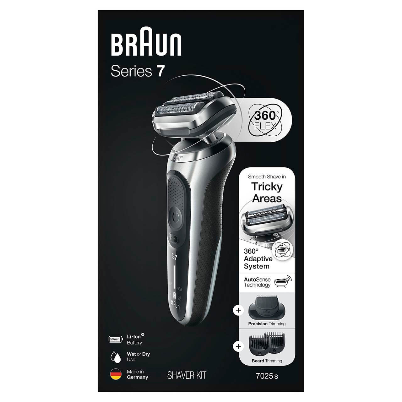 Braun 7025S và tất cả các mẫu khác trong dòng mới này là máy cạo râu khô và ướt. Bạn có thể sử dụng nó dưới vòi hoa sen hoặc với kem cạo râu, nhưng máy cạo râu sẽ không hoạt động khi được kết nối với ổ cắm điện vì vấn đề về an toàn.