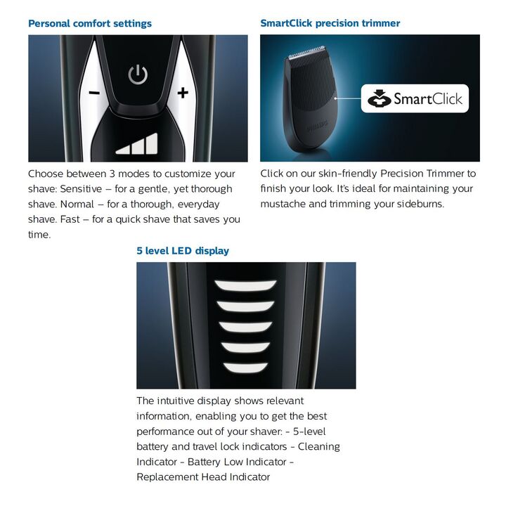 - Với mục tiêu cải thiện cuộc sống con người, Philips không ngừng nỗ lực và sáng tạo nhằm đưa công nghệ và kỹ thuật tối tân và tiết kiệm năng lượng vào những dòng sản phẩm đa dạng như: bàn ủi, máy cạo râu, máy ép trái cây, máy hấp, máy pha cà phê, bình siêu tốc… Các sản phẩm của Philips đang được tiêu thụ rộng rãi tại Việt Nam, có mặt tại 90% các cửa hàng điện gia dụng và dễ dàng tìm thấy ở tất cả các siêu thị lớn trên cả nước. Qua nhiều năm đứng vững trên thị trường, đến nay, Philips hiện là lựa chọn yêu thích của người tiêu dùng Việt. Máy cạo râu Philips Norelco S9311/84 thuộc Serial 9000 có thể cạo râu khô và ướt một cách nhẹ nhàng chỉ với vài thao tác đơn giản.