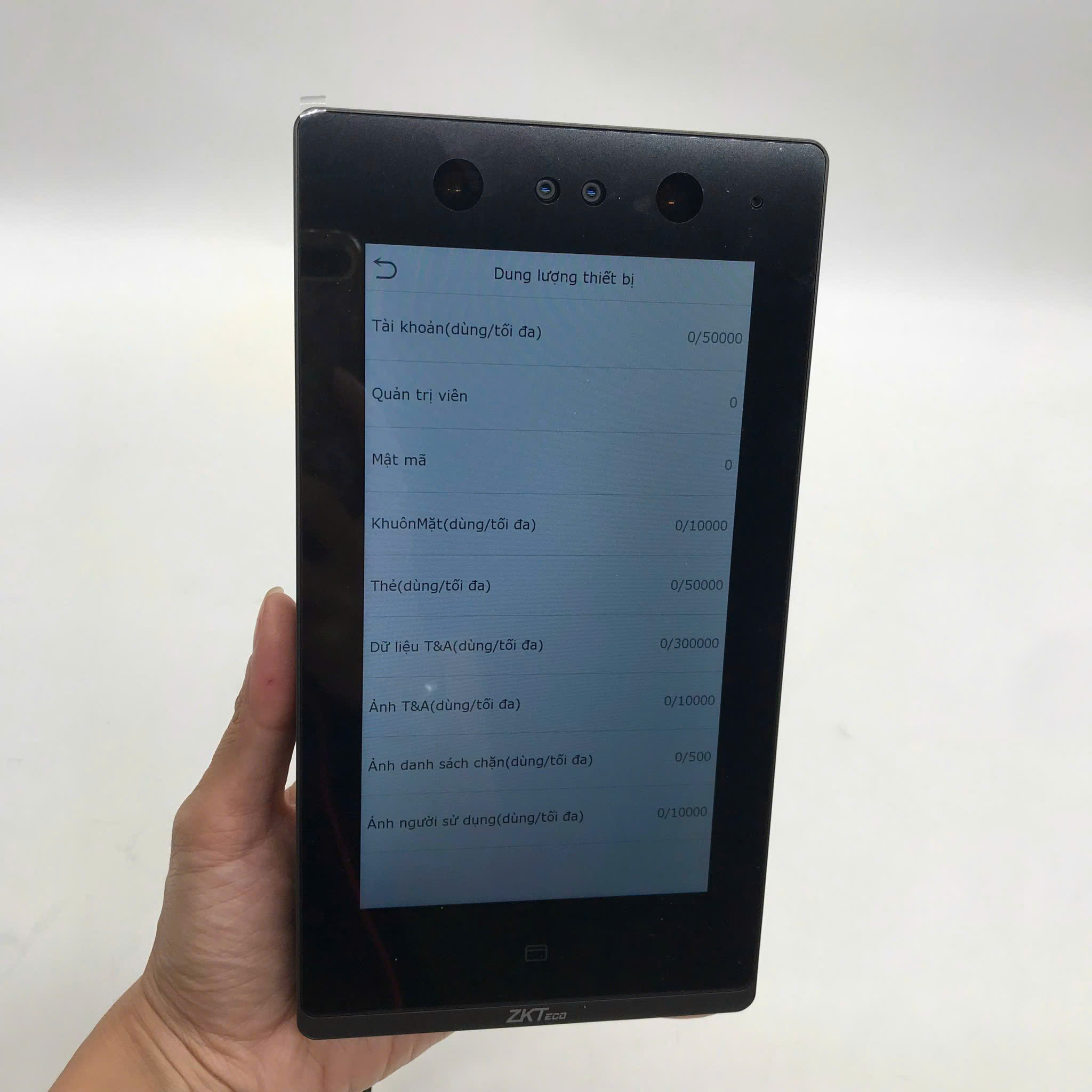 MÁY CHẤM CÔNG VÂN TAY, KHUÔN MẶT ZKTECO SenseFace 7B Mẫu máy: SenseFace 7B Hiển thị: 7"@ TFT Color Touch LED Screen (600*1024) Công suất khuôn mặt: 10.000 Dung lượng thẻ: 50.000 Dung lượng người dùn...