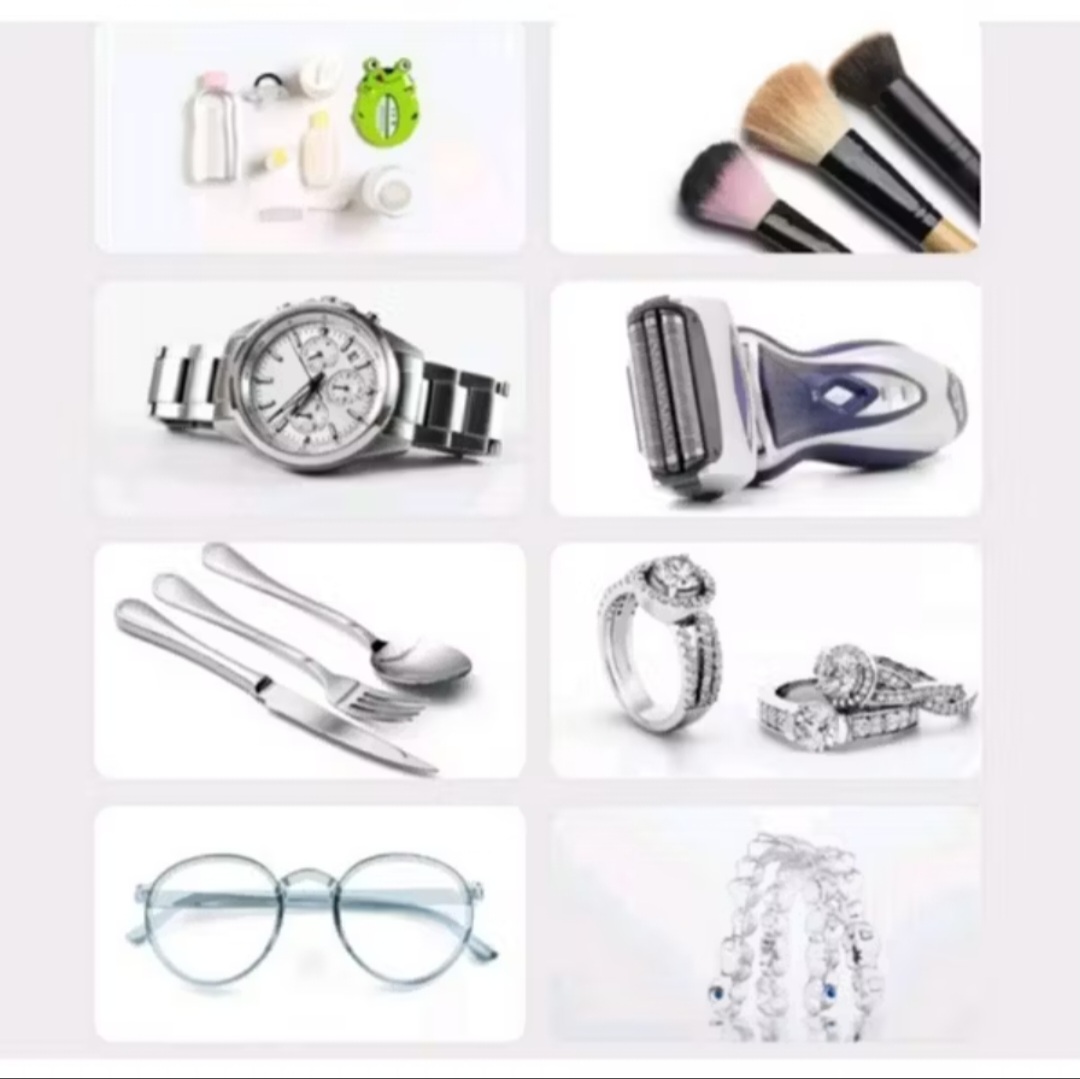 5. Thích hợp để làm sạch nhiều nhu yếu phẩm hàng ngày, chẳng hạn như sản phẩm cho bà mẹ và em bé, bàn chải mỹ phẩm, niềng răng, đồng hồ, trang sức, trang sức, bộ đồ ăn bằng kim loại, v. v.